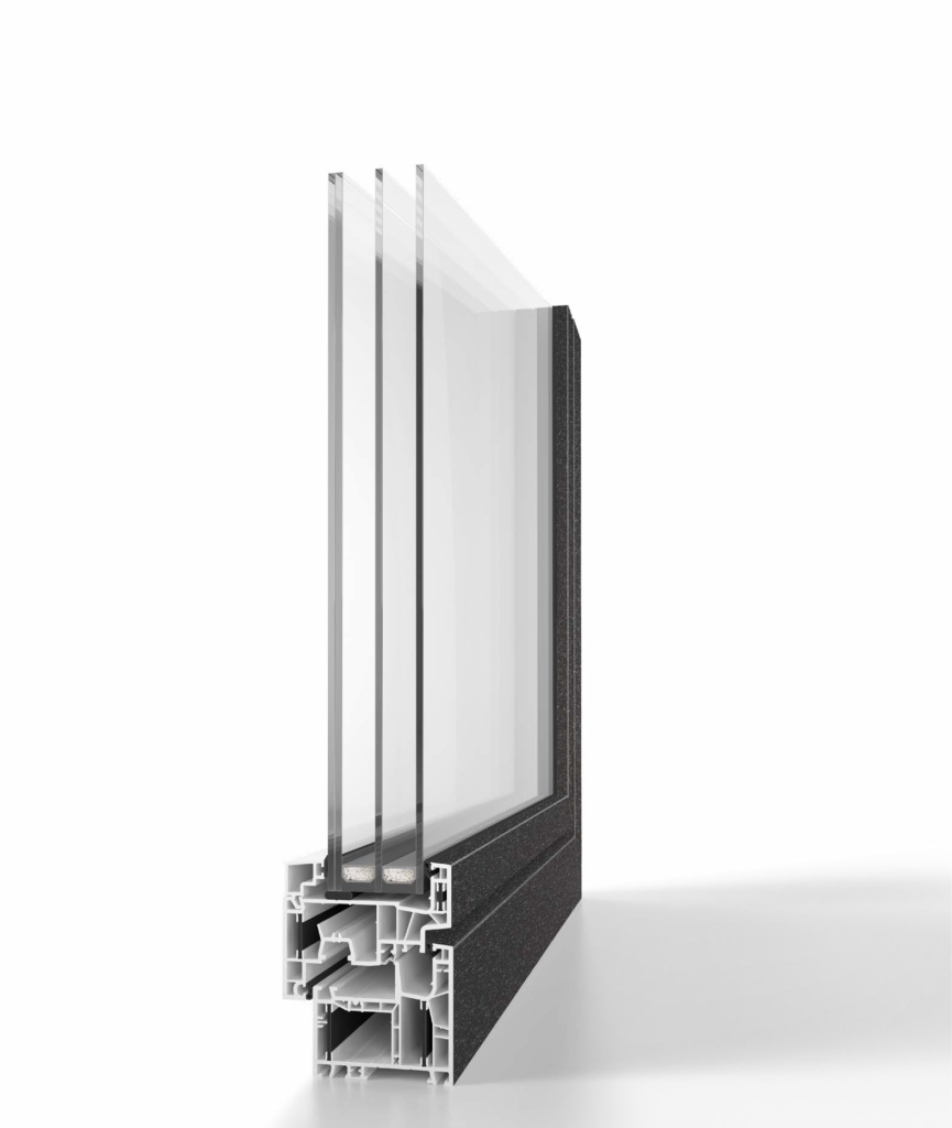 Geïmplementeerde technologie “Multifalz” zorgt ervoor dat profielen multifunctioneel zijn in alle systemen. Door slechts één profielvorm te gebruiken, kunnen we kiezen tussen een conventionele oplossing met staal, een oplossing zonder staal of een combinatie van beide oplossingen (bijvoorbeeld voor de constructie van afwijkende afmetingen).